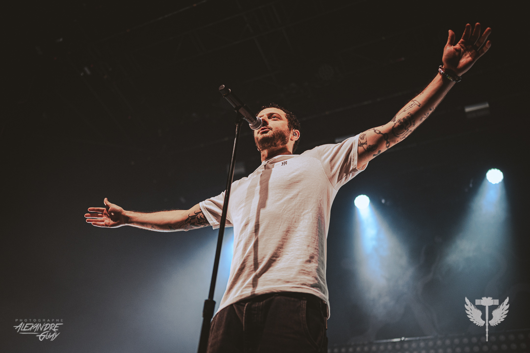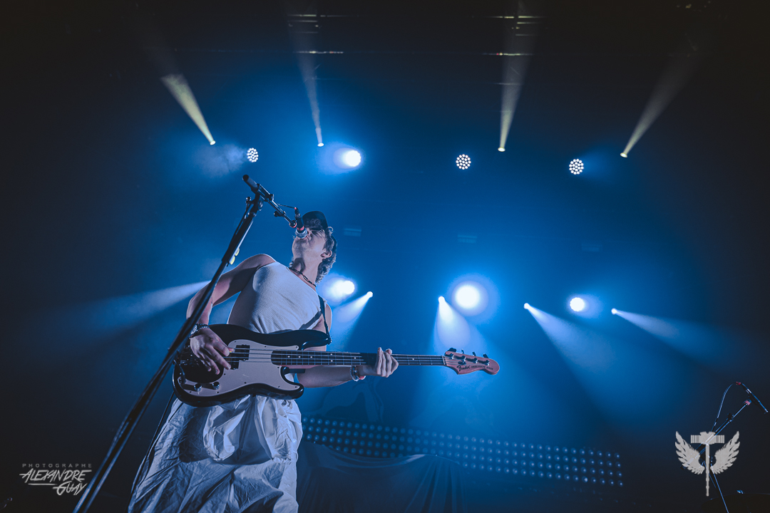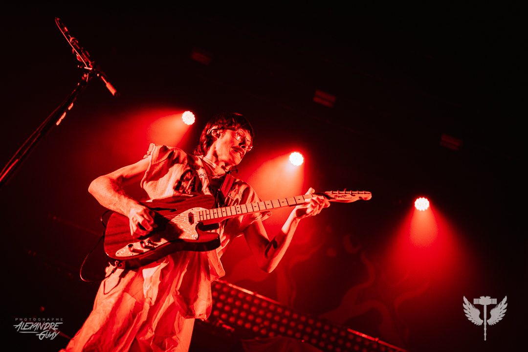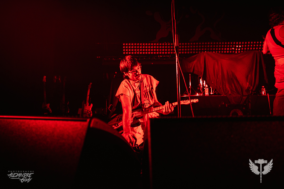 J’avais très hâte d’aller voir Grandson, un artiste que j’apprécie énormément, et il a pleinement répondu aux attentes. La soirée s’est ouverte avec Dumb Crush, qui a su réchauffer la foule avant l’arrivée de la tête d’affiche. L’entrée de Grandson était précédée d’un extrait audio lourd de sens, aux accents politiques et sociaux, qui a immédiatement plongé la salle dans une tension collective, rendant son arrivée encore plus percutante. Dès les premières minutes, Grandson a su tout donner à son public. Il sautait partout, au point où j’en étais presque essoufflée pour lui. Avec une énergie contagieuse du premier au dernier morceau, il a offert un savant mélange de vieilles et nouvelles chansons. Entre textes engagés et intensité brute, le spectacle était profondément revendicateur et rassembleur. Il a closé la soirée avec Blood//Water, un final puissant qui a fait vibrer le MTelus et laissé le public sur une note forte. Une chose est certaine : j’ai déjà hâte à sa prochaine visite.