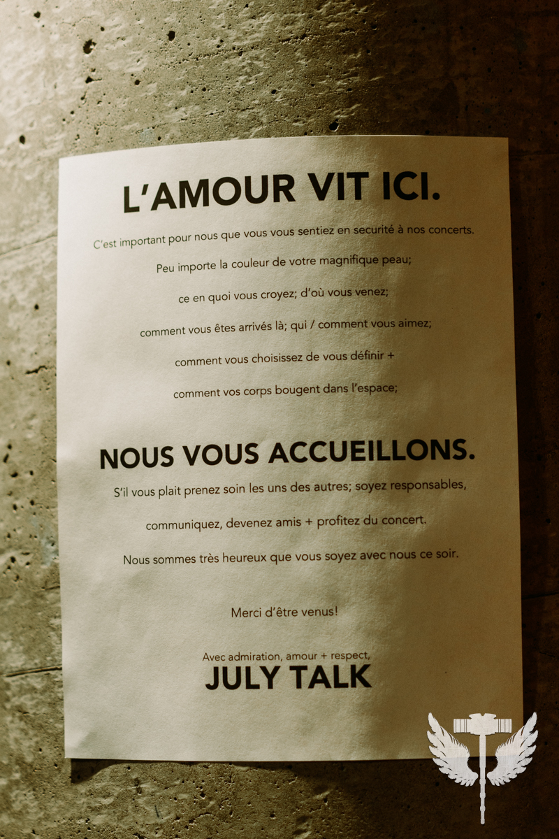 On aurait bien écouté une petite chanson en plus, mais son temps était écoulé et il était temps de laissé place à July Talk.
