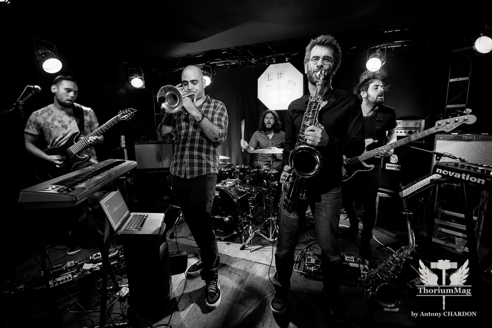 La soirée s’annonçait déjà bien : un concert plus que prometteur dans d’un des endroits les plus sympas de notre ville, à savoir le Jazz Club du Taquin (Quartier des Amidonniers). On arrive un peu en avance pour se mettre dans l’ambiance et profiter de la terrasse dans les meilleurs conditions, avant l’arrivée des premiers sons de cuivres. Et là c’est la claque … On est définitivement ravis de voir la scène Jazz se confondre avec les Musiques Actuelles, à l’instar de ce qu’on avait pu entendre par exemple avec Gogo Penguin ou Chlorine Free. Ce même Jazz qui, ce soir, pouvait aller du free jazz au groove en passant même par un semblant de métal. Un jazz actualisé, mais surtout libre dans les rythmiques, dans les compos (on salue ici le travail exceptionnel de Nicolas Gardel) ou encore dans les sonorités (avec deux pedalboards guitare/basse assez monstrueux).