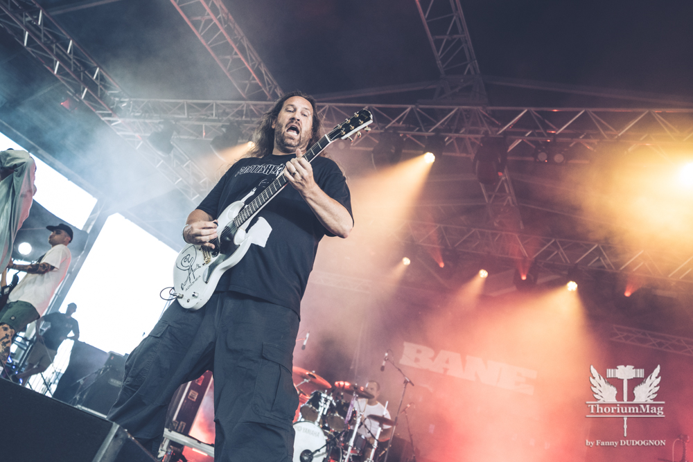 J’avais déjà entendu parler de Bane dont le leader venu directement de Serbie avait complètement remonté le groupe avec des musiciens montréalais dont deux membres de Frostbite et le drummer de Pronostic arrivé tout récemment. Je m’attendais à un black metal conventionnel…mais ce que j’ai eu m’a agréablement surpris! Jouant dans un style musical qui rappelle énormément Behemoth et Dissection, ils ont offert une performance extrêmement efficace avec un son qui était excellent. Le chanteur et guitariste Branislav Panić est un très bon frontman, très énergique et qui y allait avec humour et humilité lors de ses interractions avec la foule. Le seul petit défaut que je pourrais soulever est que les musiciens, hormis le chanteur, ne bougeaient pas beaucoup. Cela faisait longtemps que je n’avais pas été autant surpris par la performance d’un groupe, mais après ce soir, je rajoute officiellement Bane à la liste de mes groupes locaux préférés! Ceux qui s’ennuient de Dissection ont tendance à aller vers Thulcandra mais je leur donnerais une meilleure alternative : Bane!