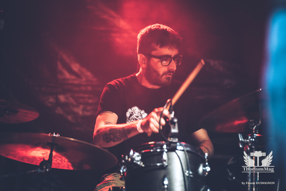 Cela fait environ huit ans que le groupe Erimha oeuvrent dans la scène locale en plus de leur participation récente au Inferno Festival en Norvège. Je n’avais jamais eu l’occasion de les voir avant ce soir et avec ce que j’avais entendu, la barre était assez haute. Malheureusement pour eux, ils ont eu des ennuis mécaniques sur la route avant le spectacle mais ils ont pu arriver juste à temps pour leur performance. Dès le début, on se rend compte que quelque chose cloche. Le son n’est vraiment pas génial et le mix est complètement chaotique (surtout avec la voix qui avait définitivement trop de reverb et le drum beaucoup trop fort). On remarque aussi l’absence d’un guitariste et même si l’autre guitariste David Gagné essaie de se donner comme il peut, le son de sa guitare coupait sans arrêt au point d’en devenir frustrant pour les gens présents (dont plusieurs ont quitté la salle après quelques chansons). Et on va se le dire, avec un musicien en moins, ça sonnait vide et on sentait beaucoup trop qu’il manquait quelque chose. Je sais que le groupe a du potentiel et c’est frustrant de voir des aspects techniques complètement gâcher leur prestation. On va espérer les revoir dans de meilleures conditions.